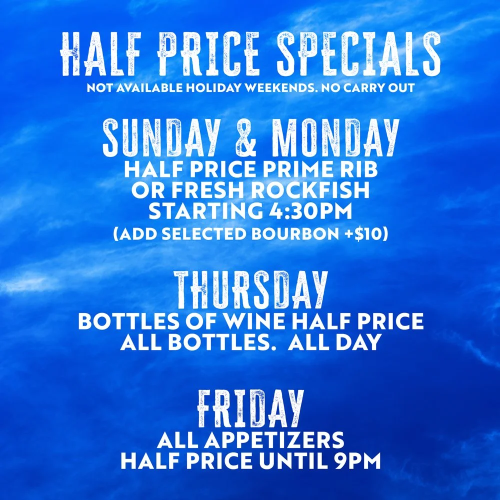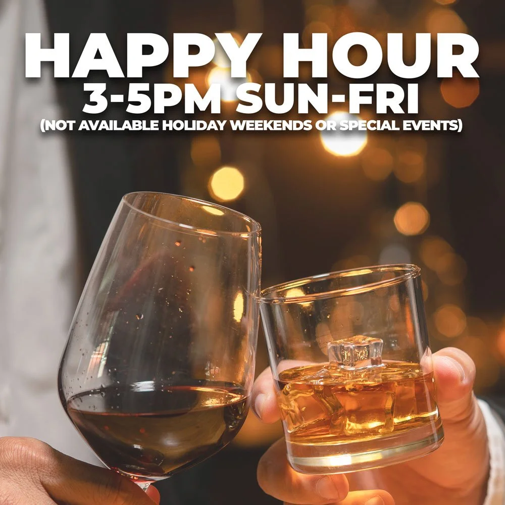 $6 Beer, Wine, CRUSHES, MARTINIS and Select Cocktails 3-5PM SUNDAY - FRIDAY. (Not available holiday weekends or special events)